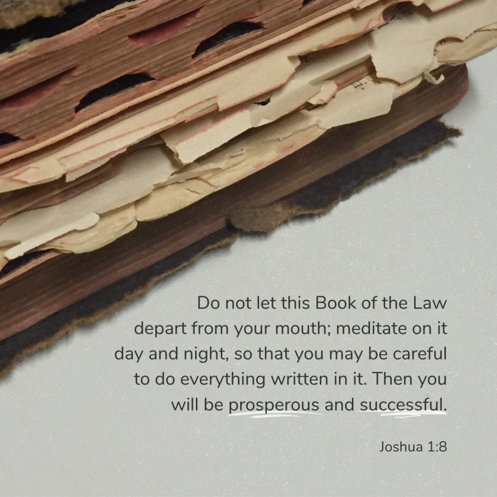 Do not let this Book of the Law depart from your mouth; meditate on it day and night, so that you may be careful to do everything written in it. Then you will be prosperous and successful.